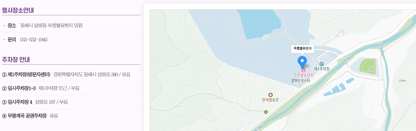 | 장소 | 강원도 동해시 무릉별유천지 |